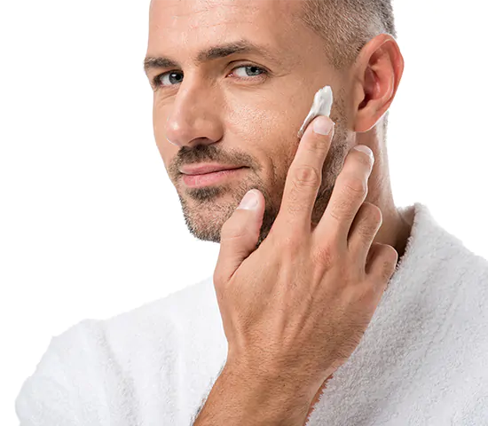 Man gebruikt de Alka Creme op zijn huid