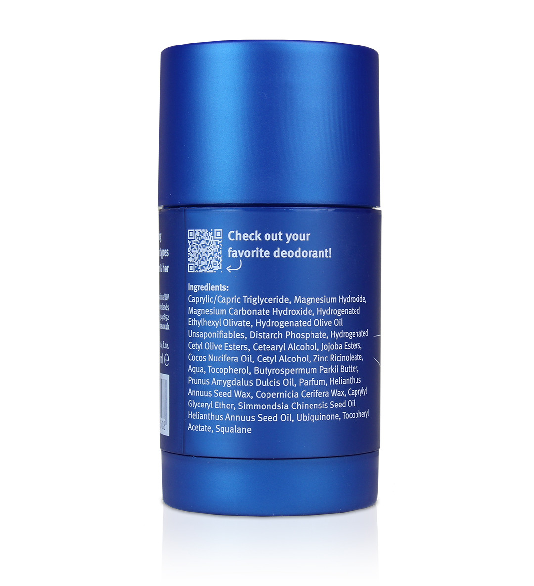 Caprylic/Capric Triglyceride, Magnesium Hydroxide, Magnesium Carbonate Hydroxide, Hydrogenated Ethylhexyl Olivate, Hydrogenated Olive Oil Unsaponifiables, Distarch Phosphate, Hydrogenated Cetyl Olive Esters, Cetearyl Alcohol, Jojoba Esters, Cocos Nucifera Oil, Cetyl Alcohol, Zinc Ricinoleate, Aqua, Tocopherol, Butyrospermum Parkii Butter, Prunus Amygdalus Dulcis Oil, Parfum, Helianthus Annuus Seed Wax, Copernicia Cerifera Wax, Caprylyl Glyceryl Ether, Simmondsia Chinensis Seed Oil, Helianthus Annuus Seed Oil, Ubiquinone, Tocopheryl Acetate, Squalane