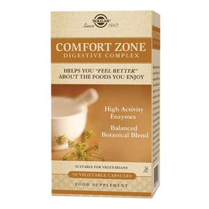 Solgar Comfort Zone is een vegetarische enzymen complex. Enerzijds is dit complex rijk aan koolhydraat-, eiwit-, en vetsplitsende enzymen. Anderzijds is het gecombineerd met botanische kruiden die verzachting bieden.