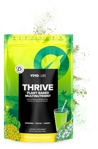 Say goodbye to cheap chemically extracted multivitamin pills packed with synthetic and isolated nutrients. Thrive is formulated by nutritionists and made with 100% plant based ingredients.